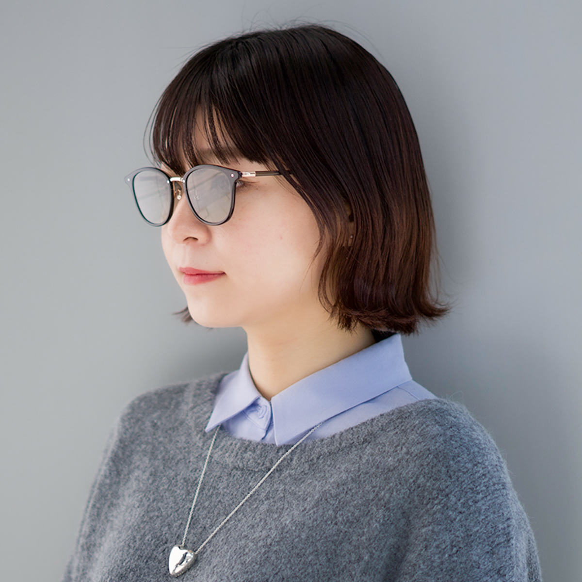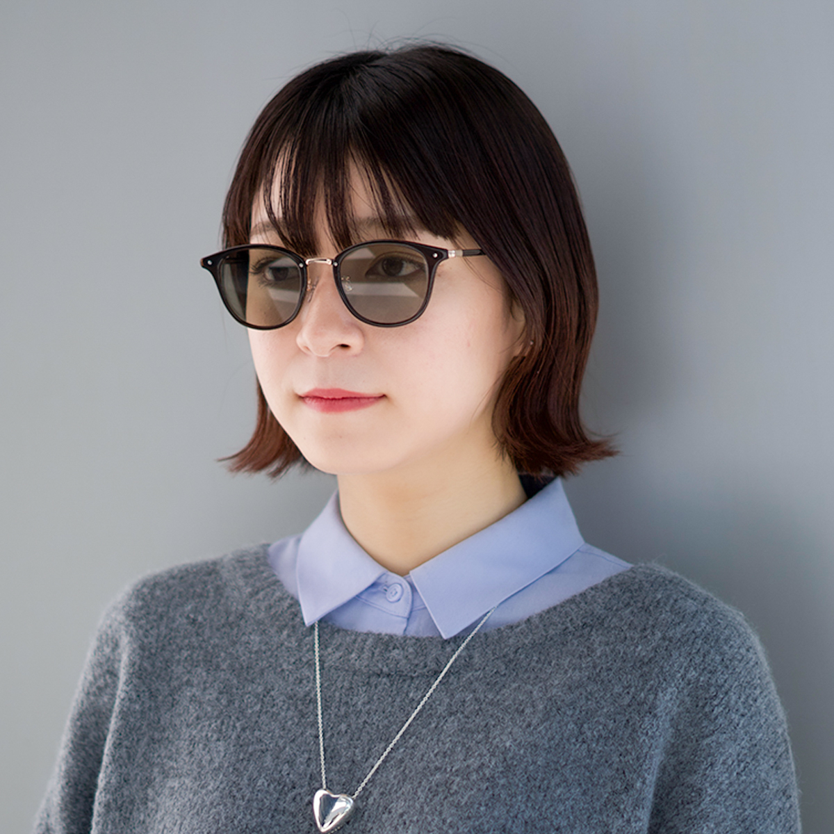 落ち着いた色合いのフレームカラーはどんなスタイルにも合わせやすく、サイズ感も小ぶりなためお顔が小さい方にもオススメのデザインです。