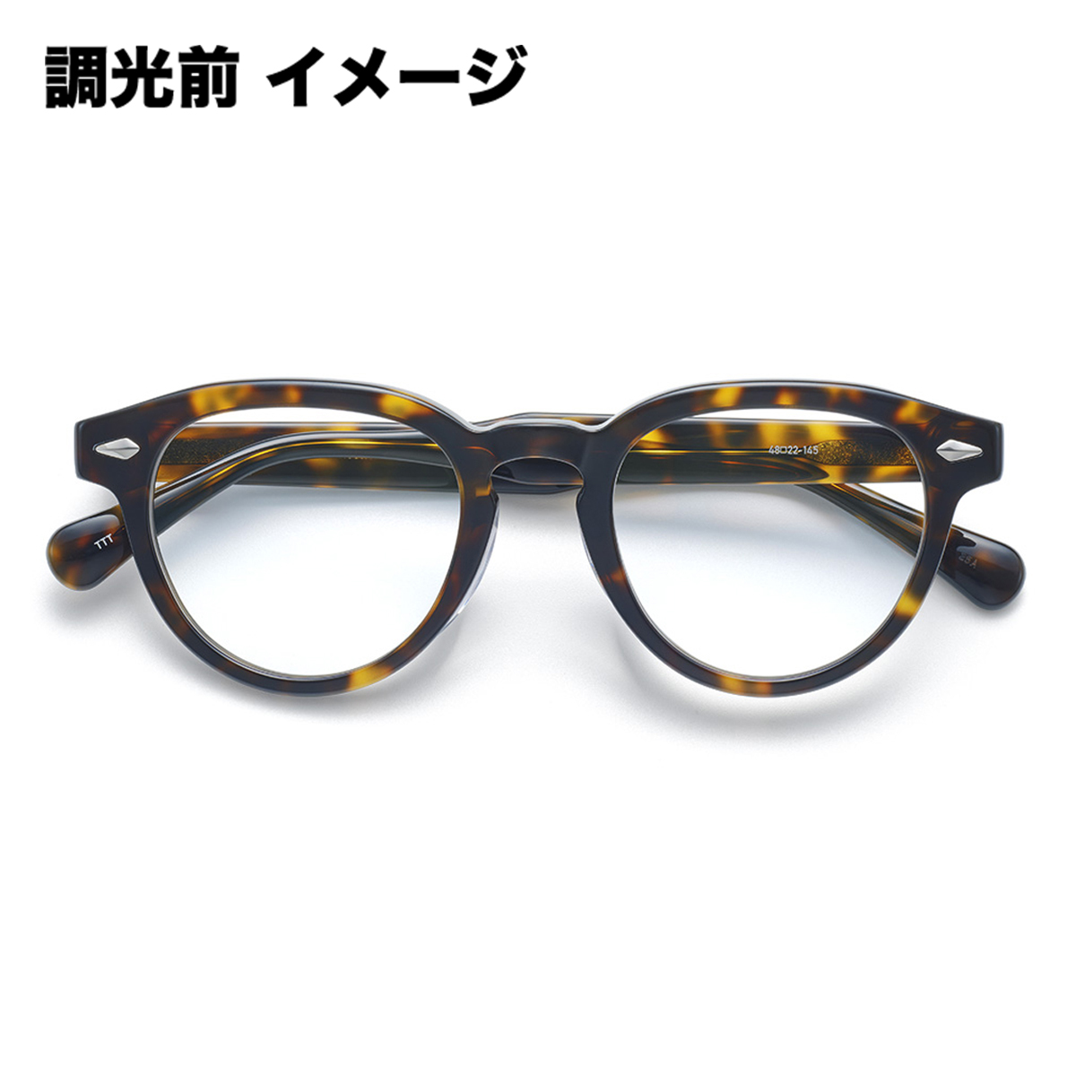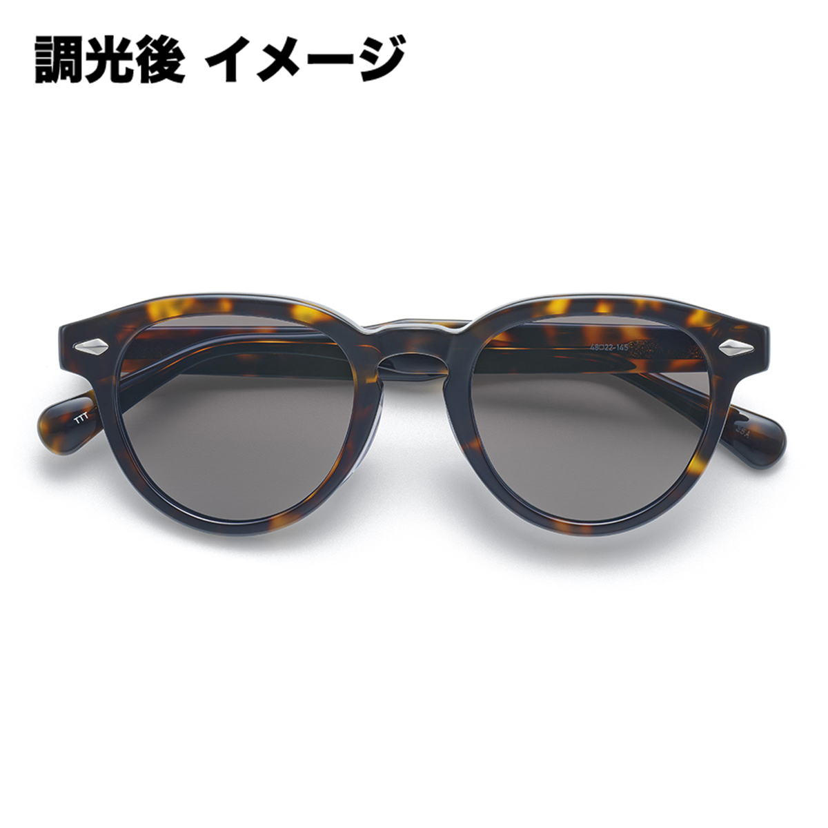 トートイス×グレーのモデルには、紫外線量によってレンズの色濃度が変化する調光レンズを採用。