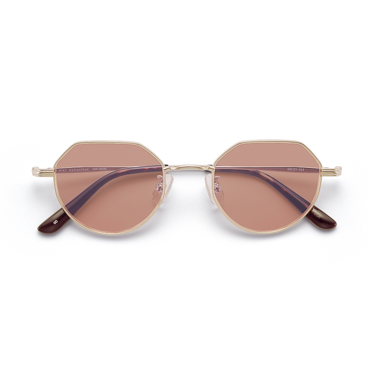 特徴的ながら、細身のメタルフレームにすることで顔なじみがよく、バランスの良いデザインに。
