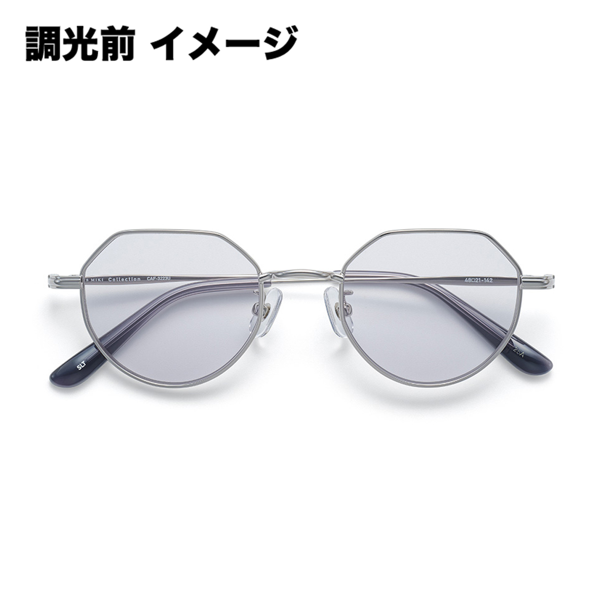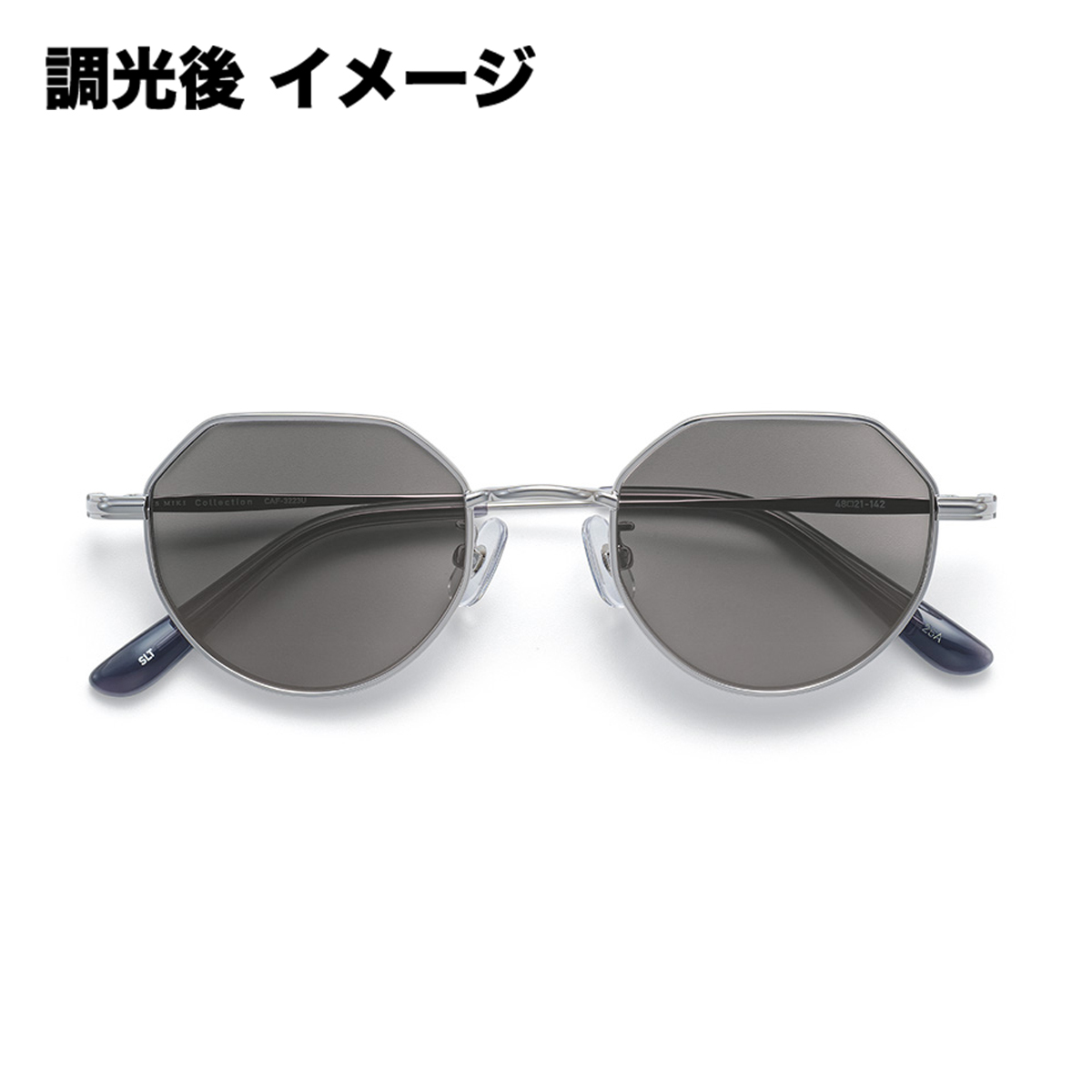 シルバー×グレーのモデルには、紫外線量によってレンズの色濃度が変化する調光レンズを採用。