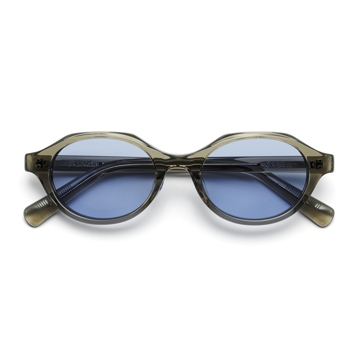 オーバルのようなクラウンパントシェイプに、潔く切り落とされたようなシャープなカッティングは、ボリュームのあるフレームを野暮ったく見せず、洗練された印象を与えます。