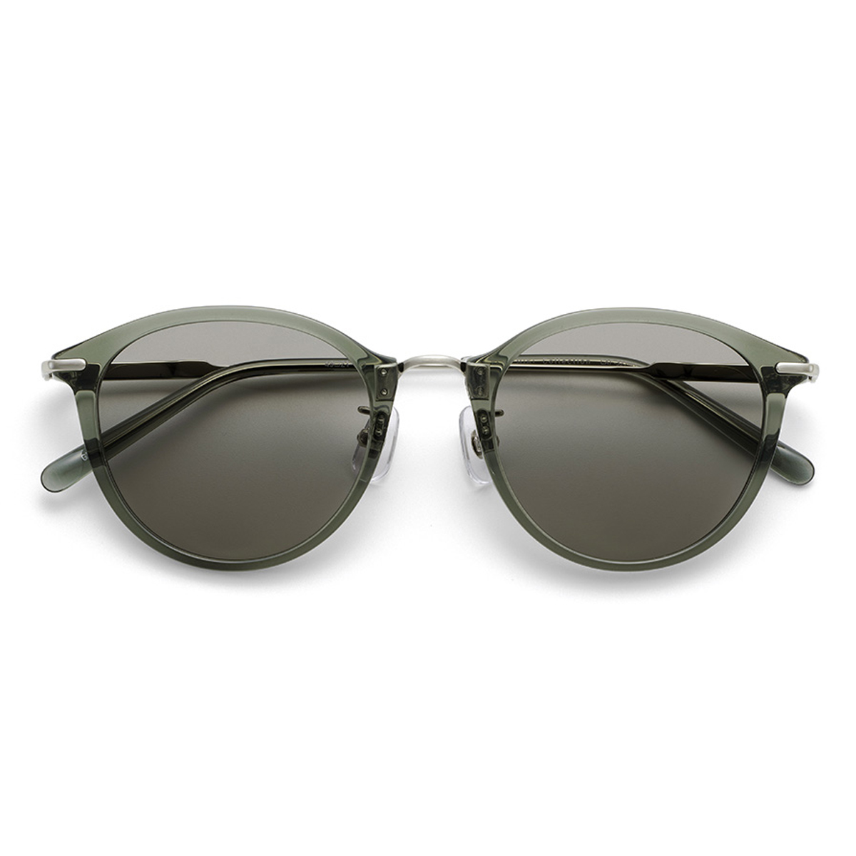 - クラシカルな雰囲気を残しながら、顔立ちを明るく見せる細身のラインと、華やかなメタルパーツが特徴のコンビネーションサングラス。