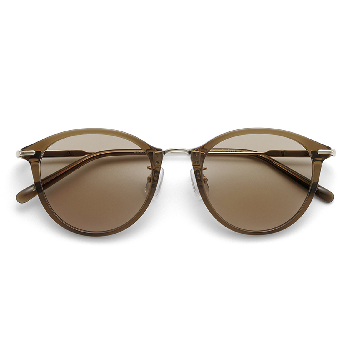 ブラウンフレームには、クリアからブラウンへと色が変化する調光レンズを採用。
