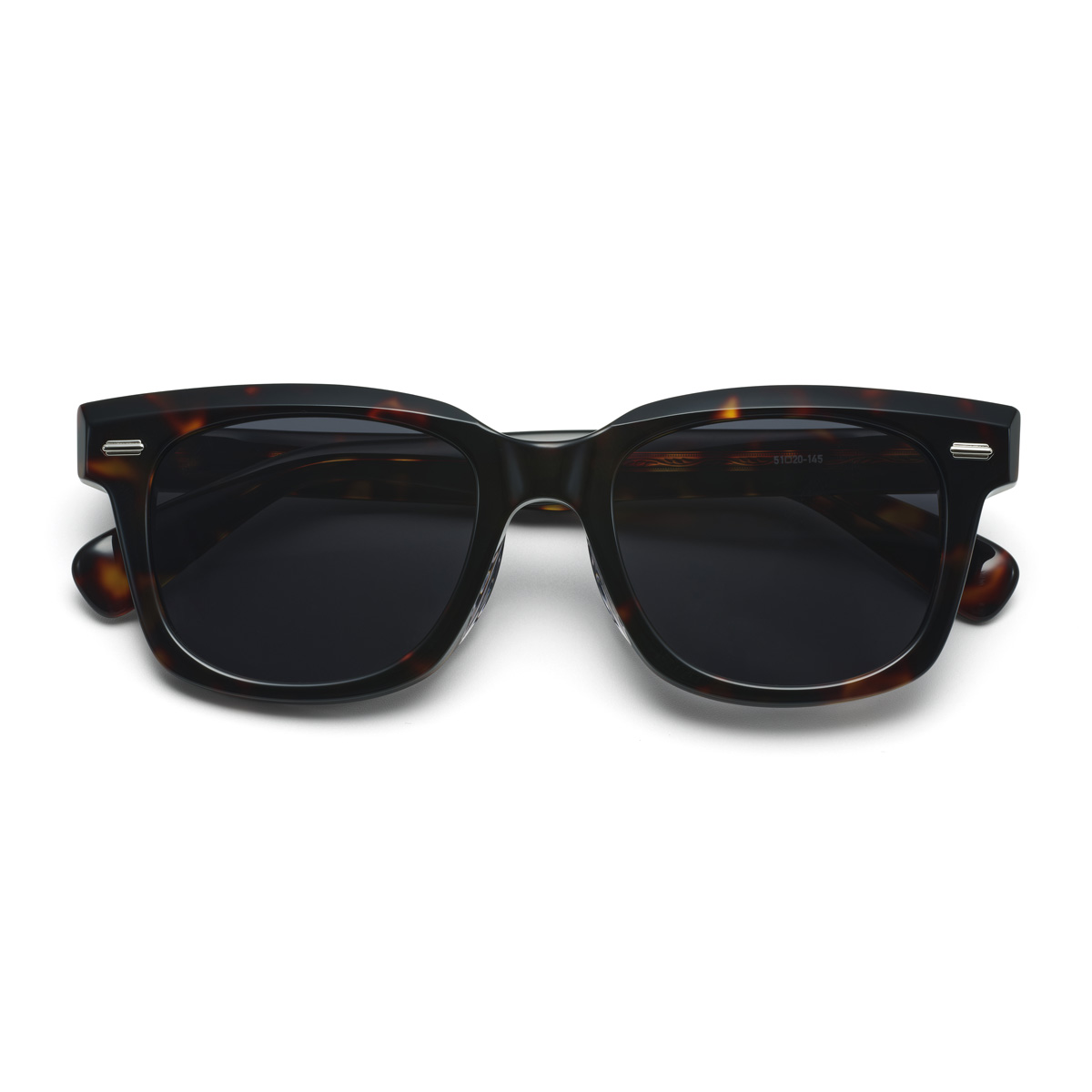 - 王道のウェリントンシェイプに8ミリ厚の生地を使用した、重厚感のあるサングラス。