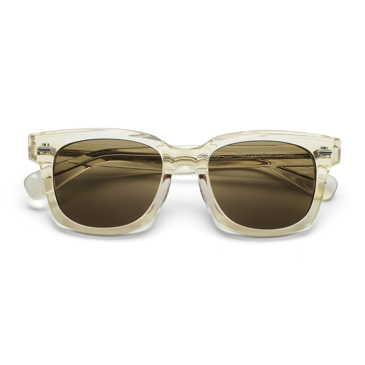 - 王道のウェリントンシェイプに8ミリ厚の生地を使用した、重厚感のあるサングラス。