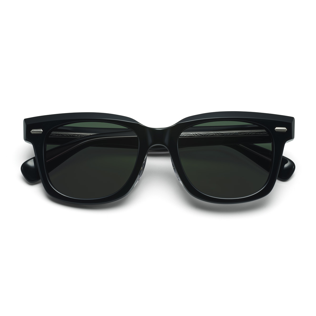- 王道のウェリントンシェイプに8ミリ厚の生地を使用した、重厚感のあるサングラス。