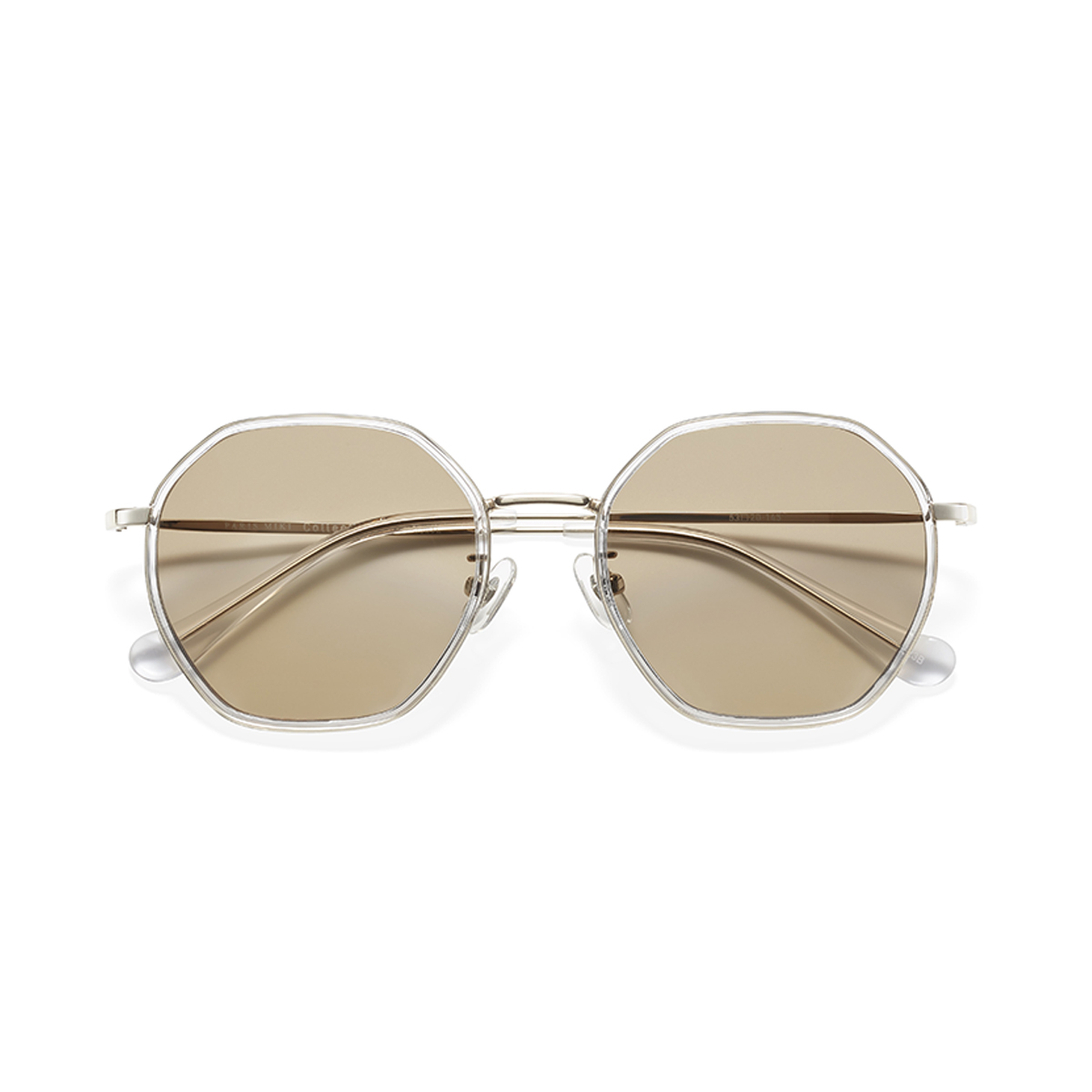 一見奇抜に感じられる多角形ですが、大ぶりなサイズ感に華奢なテンプルが、すっきりとした表情に仕上げてくれます。