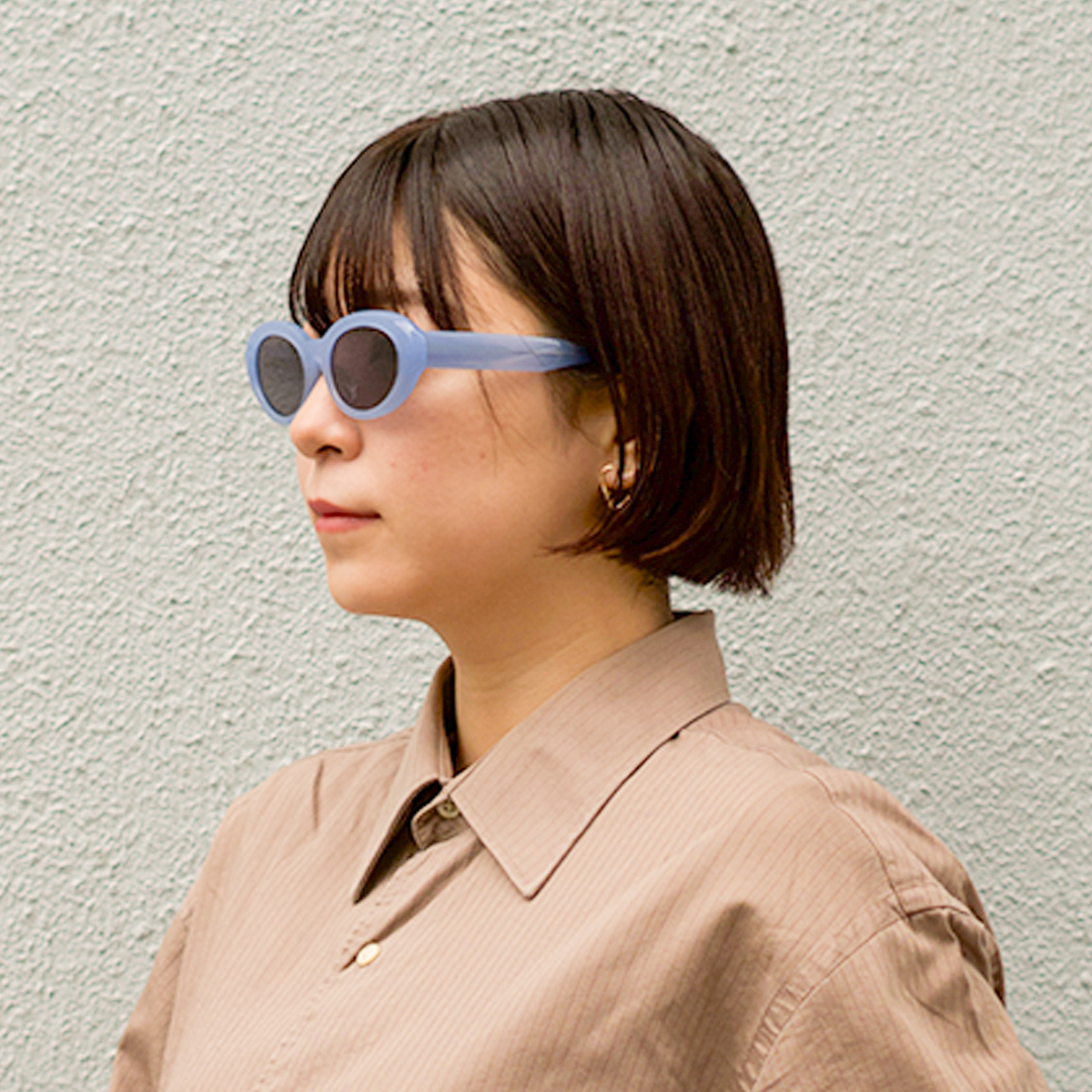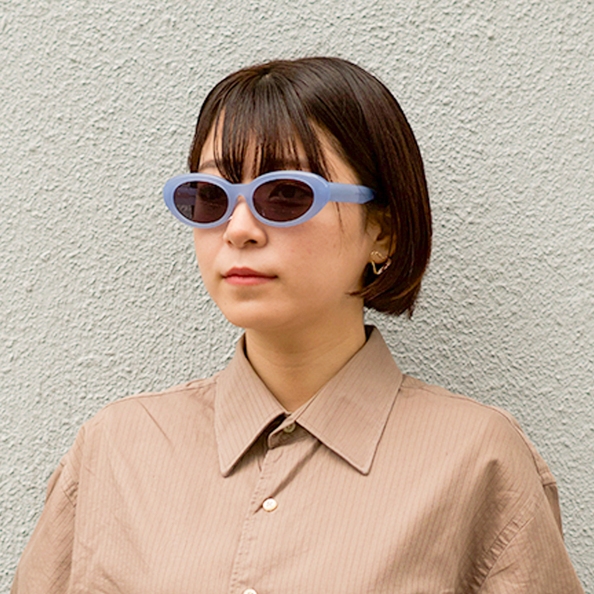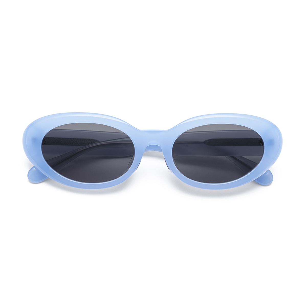 - レンズの縦幅が低めのオーバル型サングラス。