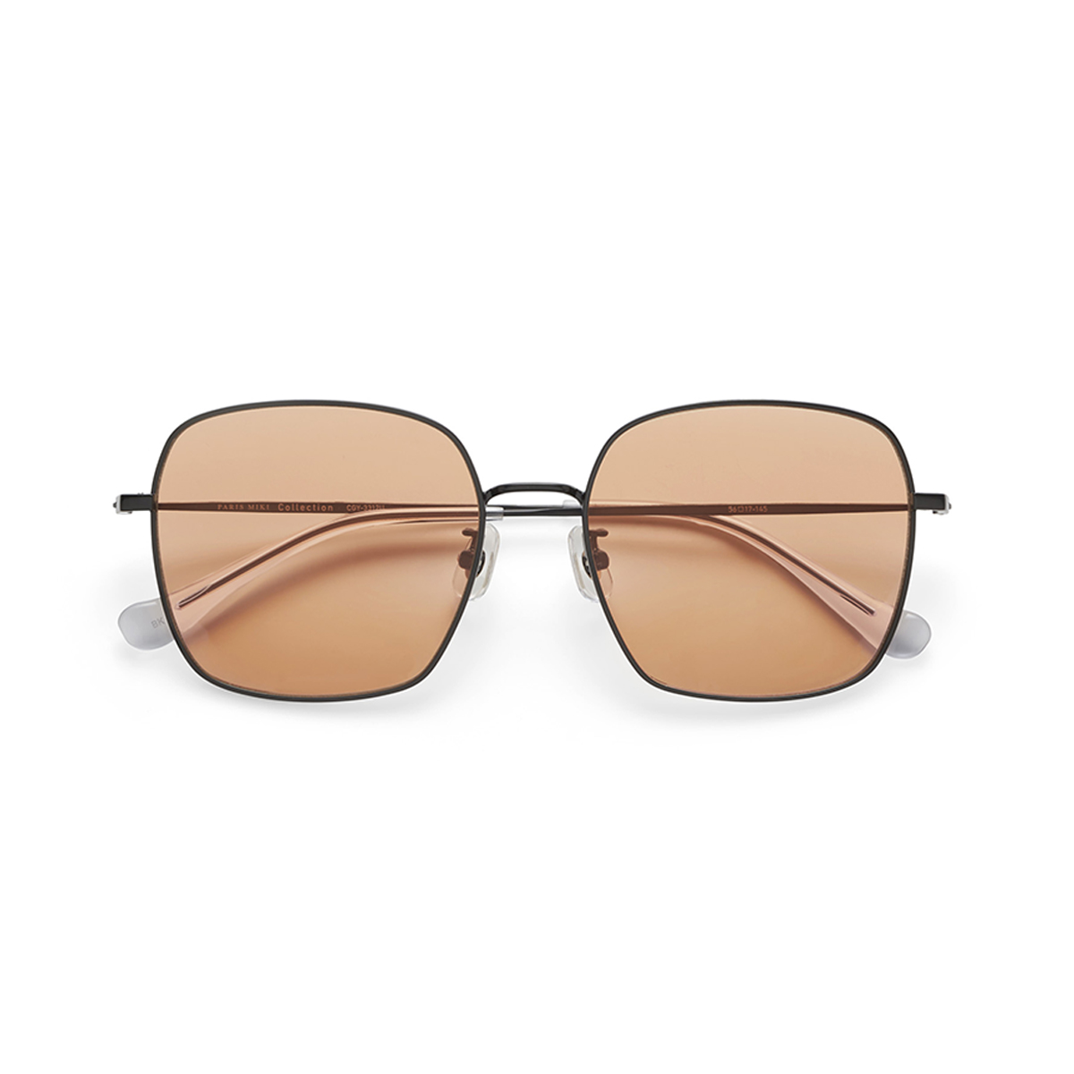 - スクエアシルエットときらりと光る華奢なメタルフレームが、華やかな印象のサングラス。