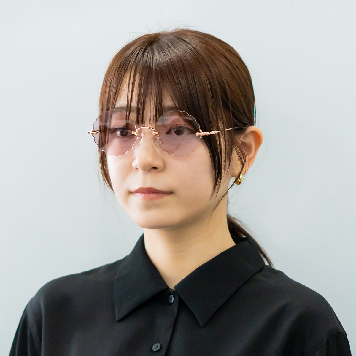 難しい形にも見えますが、ラウンドに近いデザインと溶け込みやすいリムレスデザインで、意外と掛けやすくおすすめ!