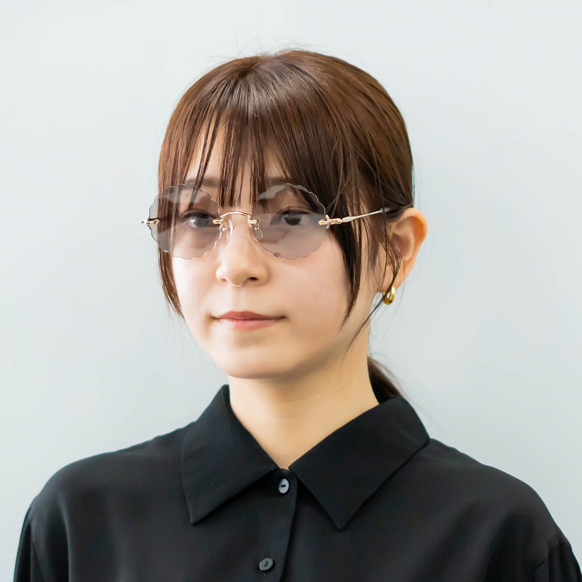 難しい形にも見えますが、ラウンドに近いデザインと溶け込みやすいリムレスデザインで、意外と掛けやすくおすすめ!