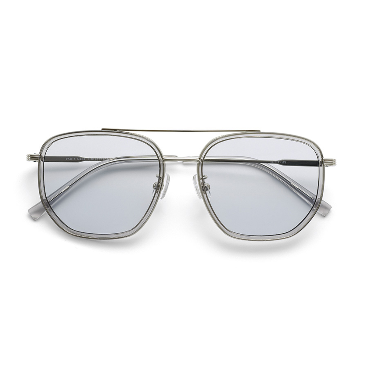 レトロな印象になりがちなツーブリッジですが、クリア素材と組み合わせること一気に近未来的なテックスタイルに。