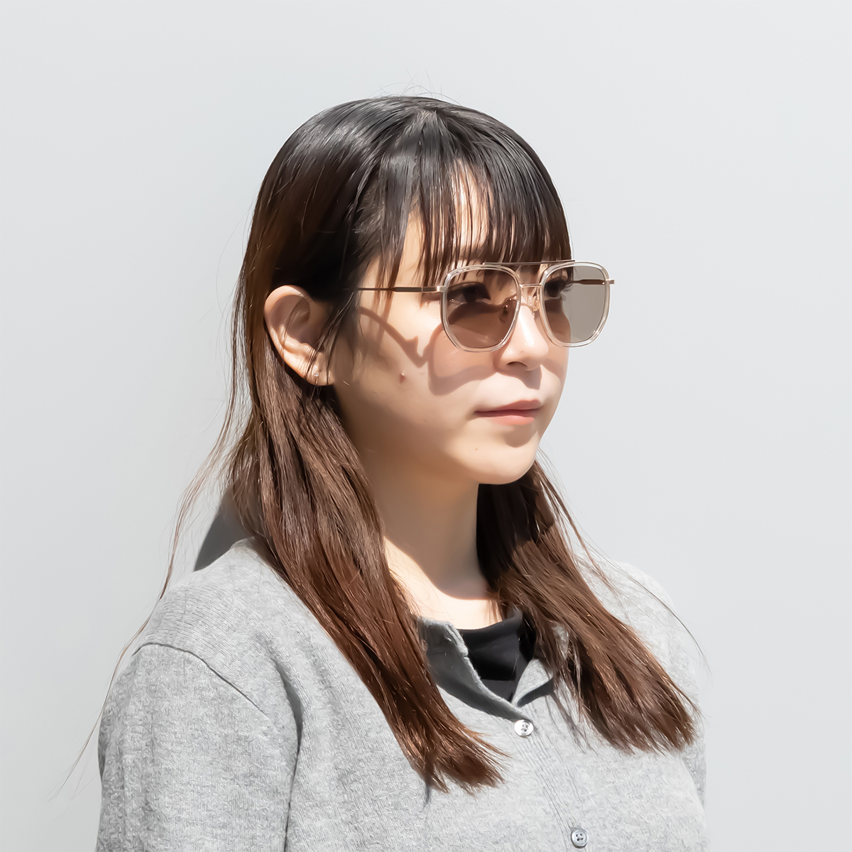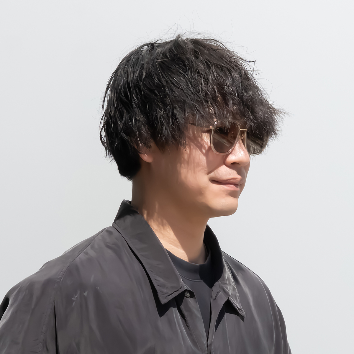 レトロな印象になりがちなツーブリッジですが、クリア素材と組み合わせること一気に近未来的なテックスタイルに。