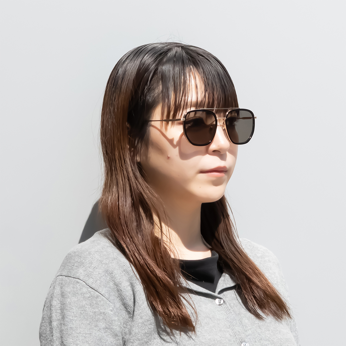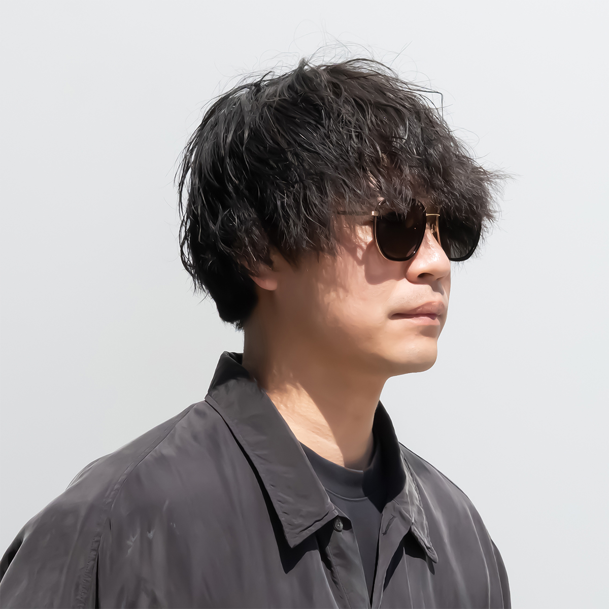 レトロな印象になりがちなツーブリッジですが、クリア素材と組み合わせること一気に近未来的なテックスタイルに。