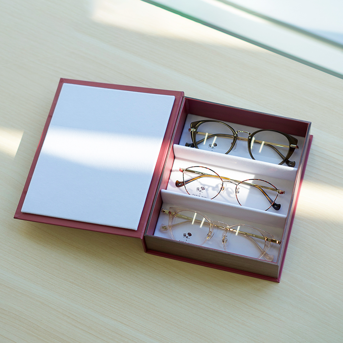 メガネが3本収納できる仕切り付き。
