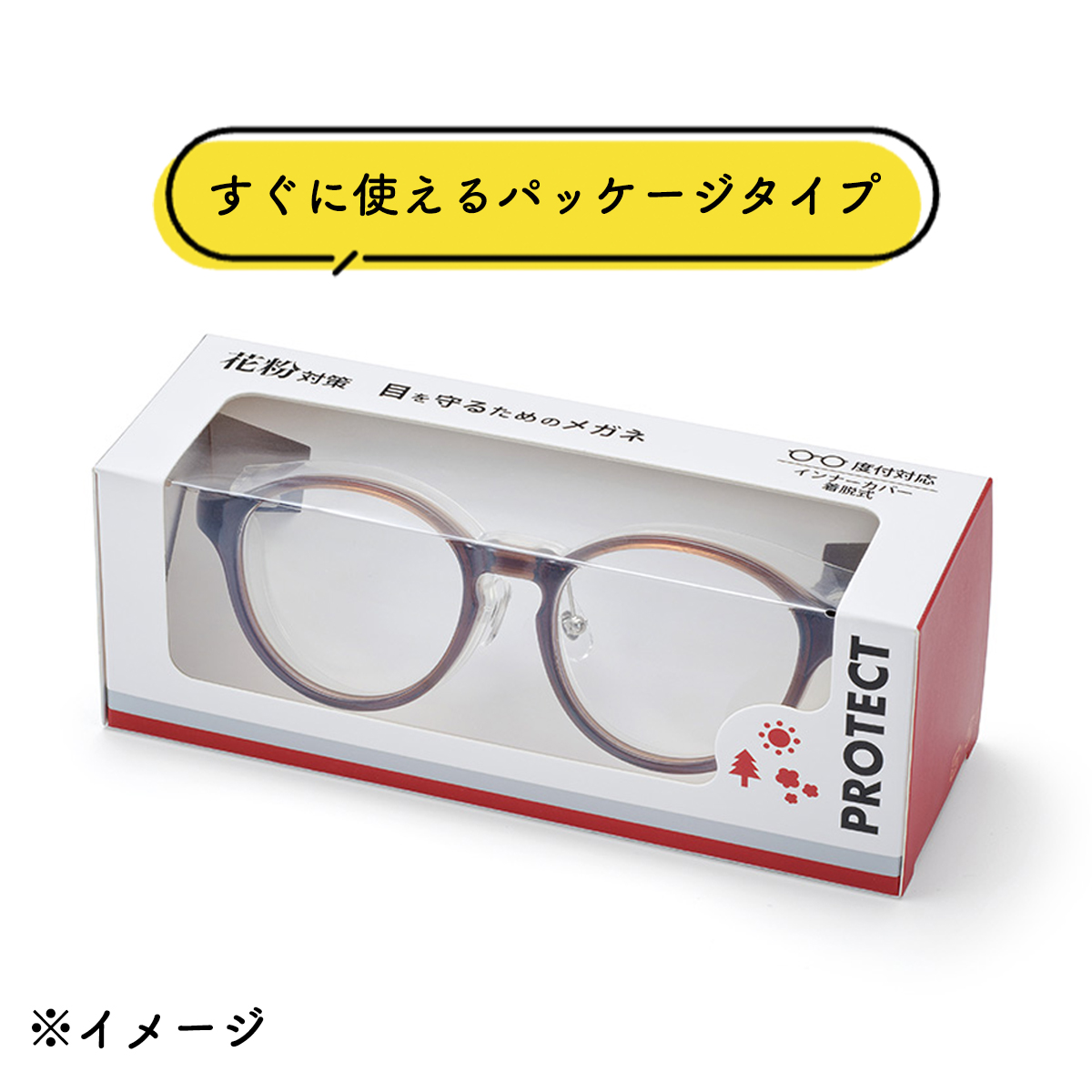 オーバルタイプの花粉メガネ。