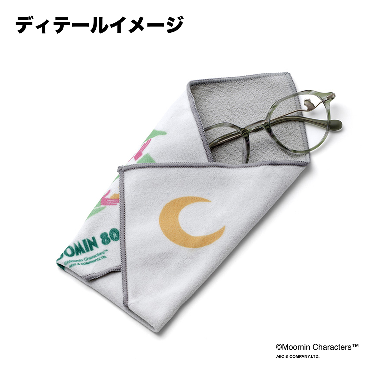 80周年の特別なイラストがプリントされたマイクロファイバーのメガネクロス。
