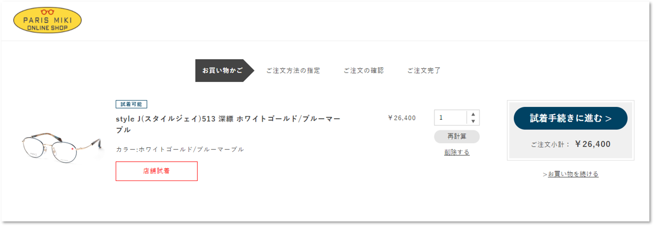 ゲスト購入の場合は、メール info.shop@paris-miki.jp もしくはお電話(0120-780-161)でご連絡ください。