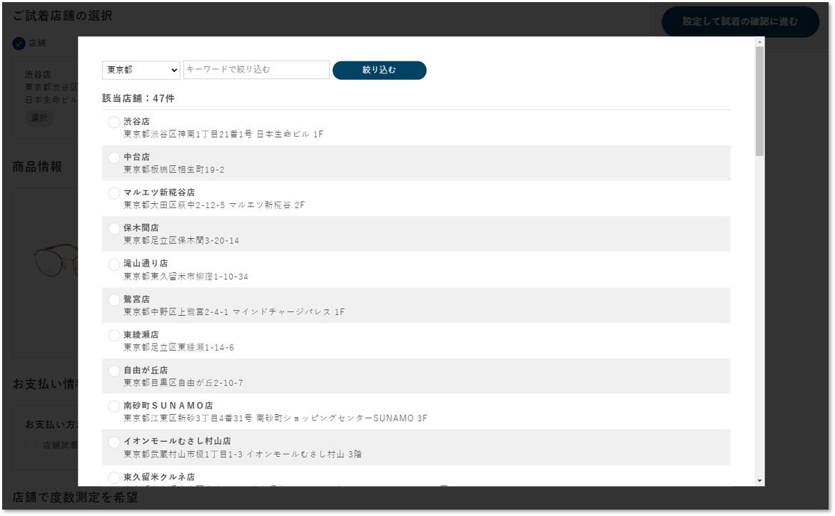 「ご試着店舗の選択」からご試着をご希望される店舗をご選択ください。