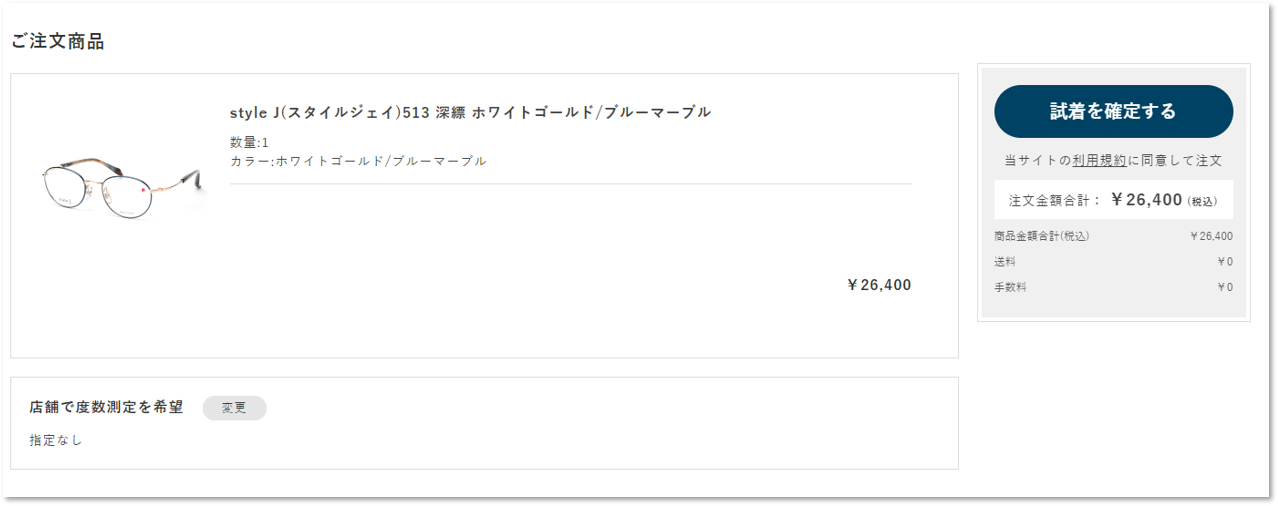 ※試着予約申込時には、選択された商品の合計代金が表示されますが、請求は発生しません。